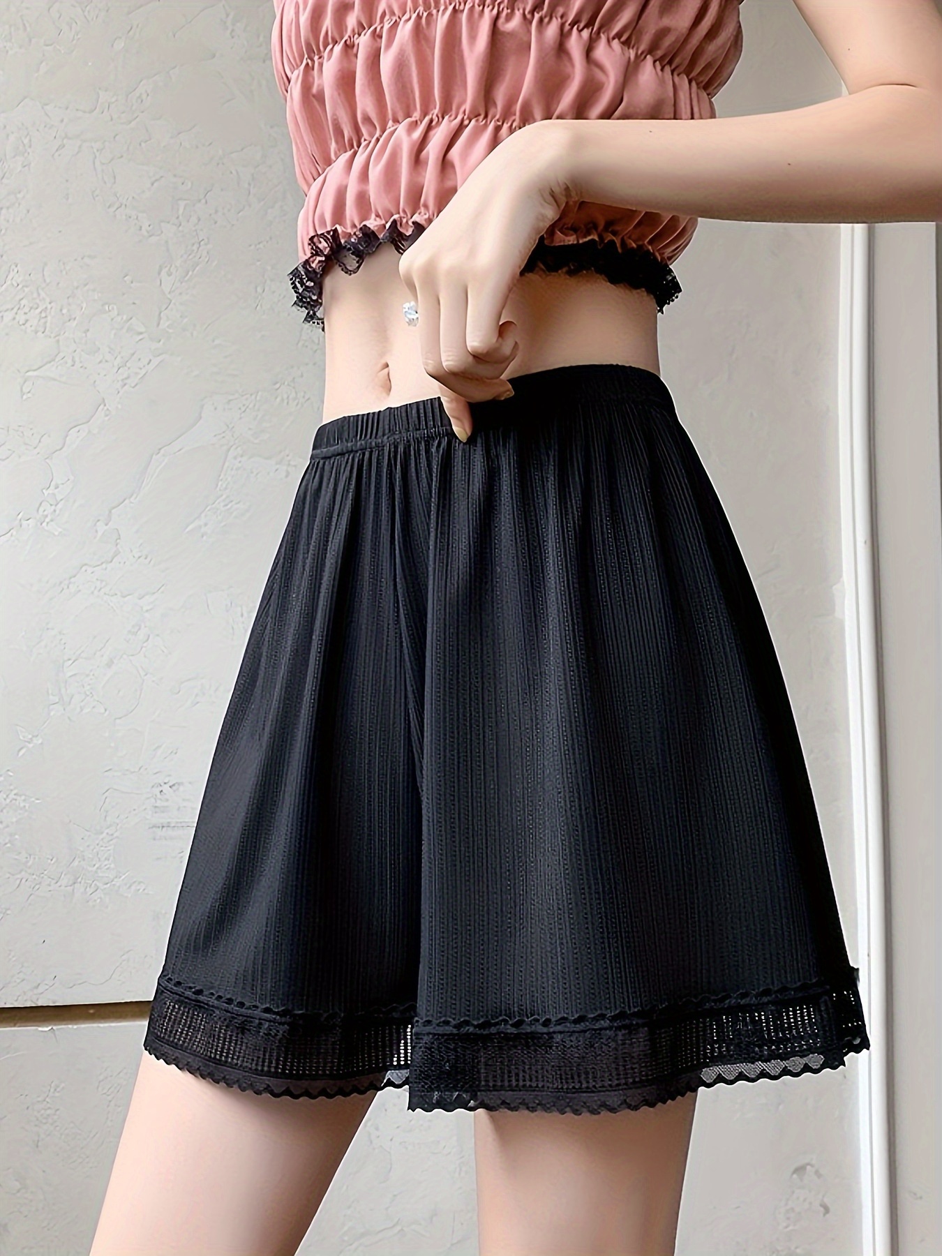 Chic Lace-Trimmed Safety Shorts for Women - Plus Size, Loose Fit, Non-See-Through, Perfect for Layering & Casual Wear