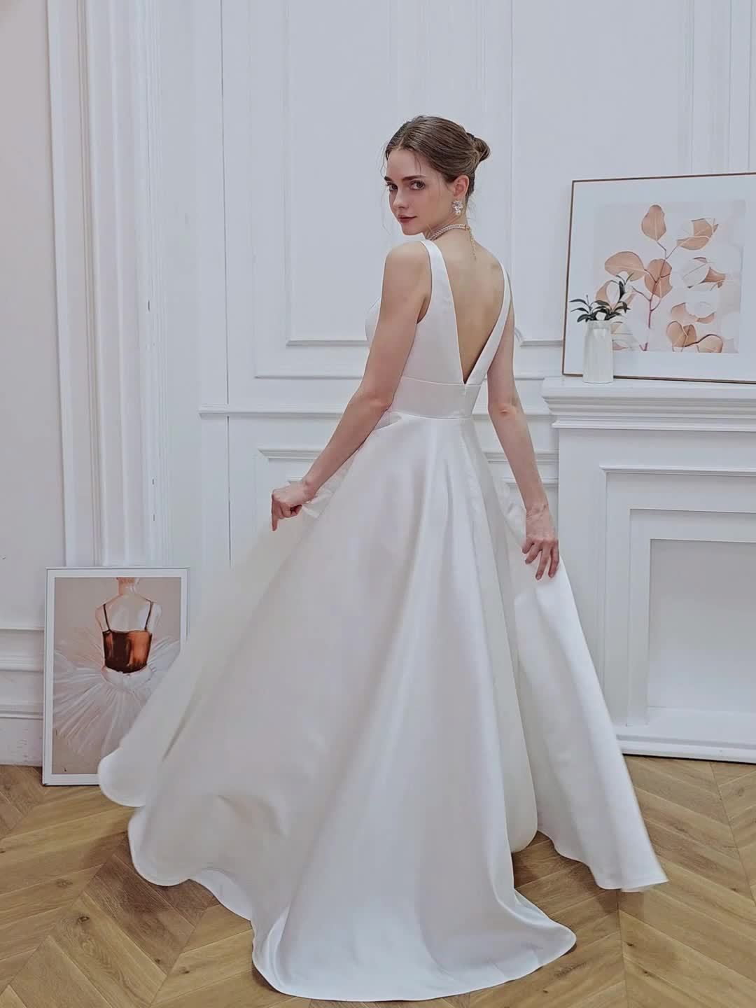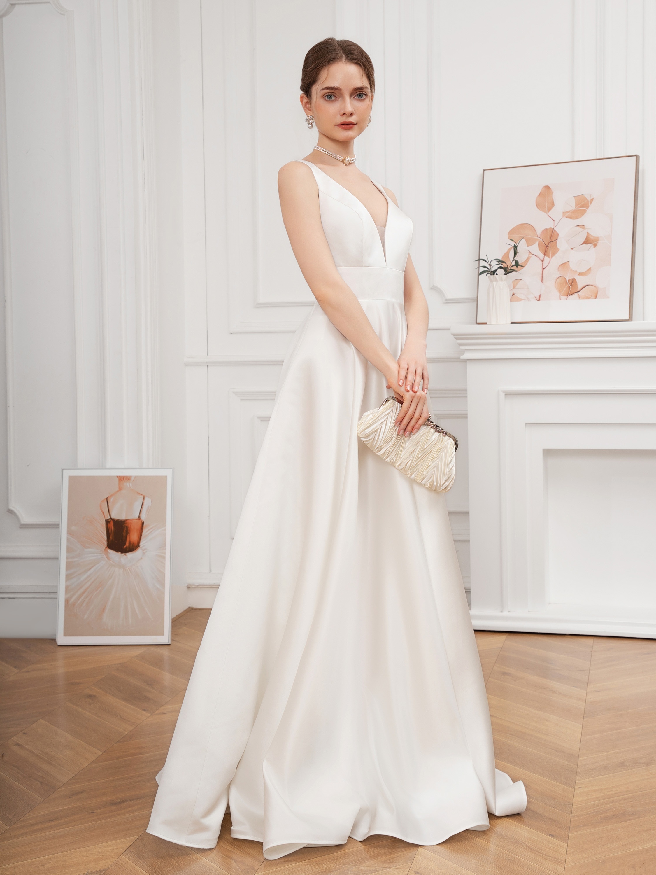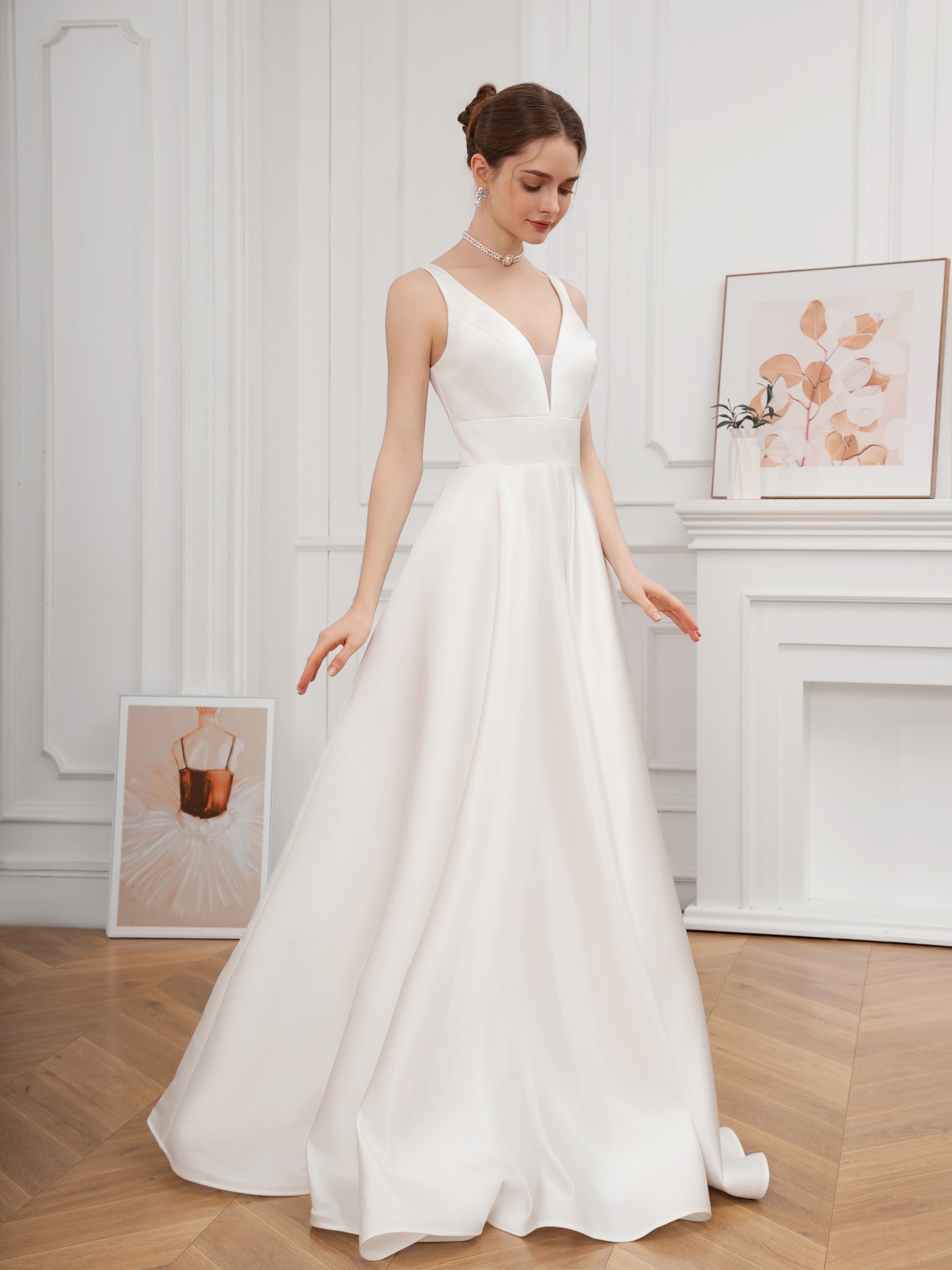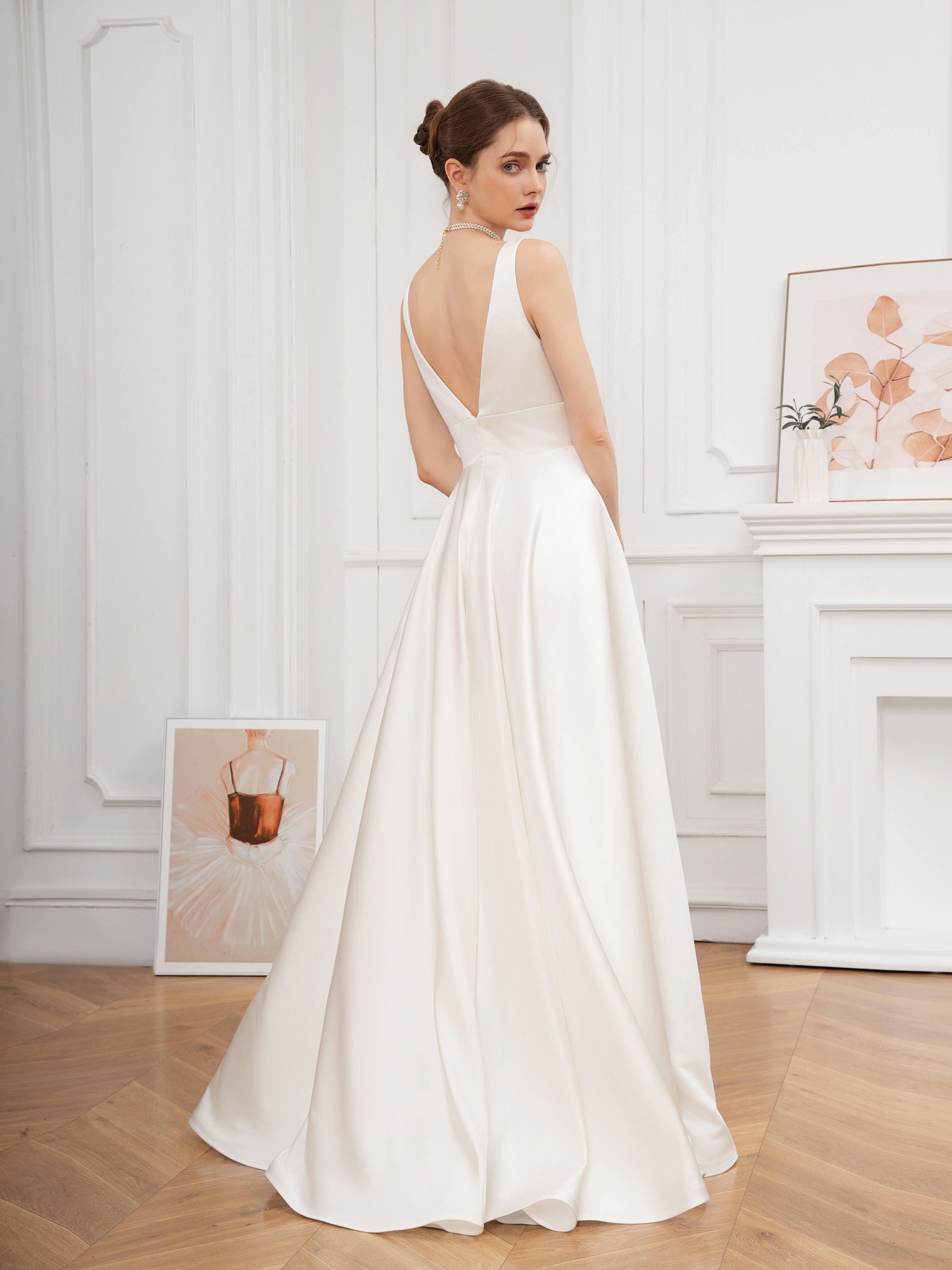 Elegant V-Neck Sleeveless A-Line Wedding Gown with Pencil Skirt and Exposed Back