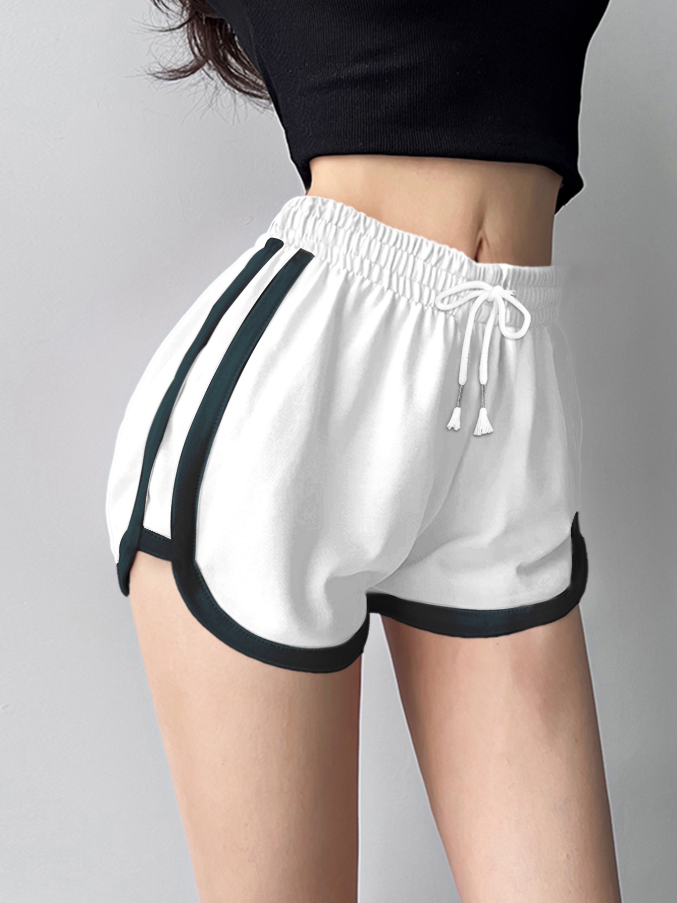 Women's Breathable White Casual Athletic Shorts - Loose Fit, Drawstring Waist, Perfect for Running & Fitness