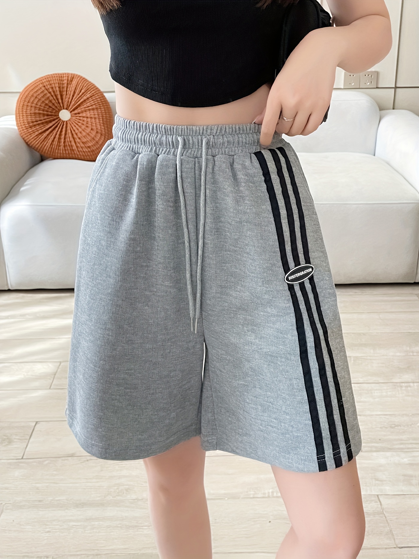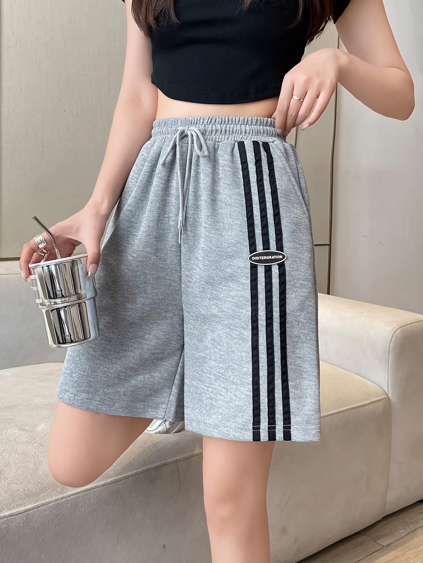 Women's Casual Sporty Shorts - Loose Fit, Mid-Rise with Drawstring Waistband, Breathable Polyester, Letter Print Design for Spring/Summer/Fall