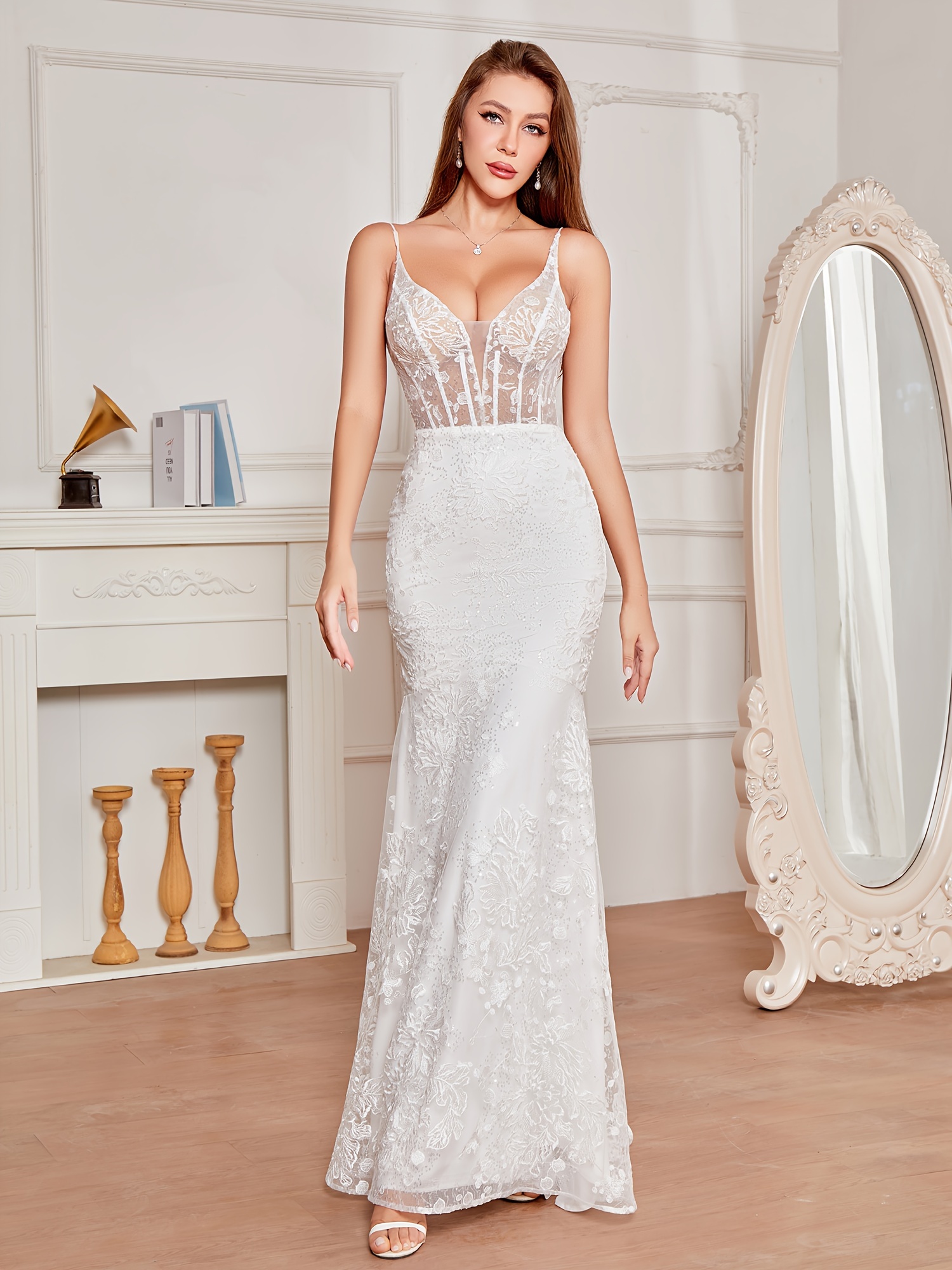 Contrast Mesh Bodycon Splicing Maxi Dress for Wedding Party, Elegant Sleeveless Mermaid Hem Dress for Women