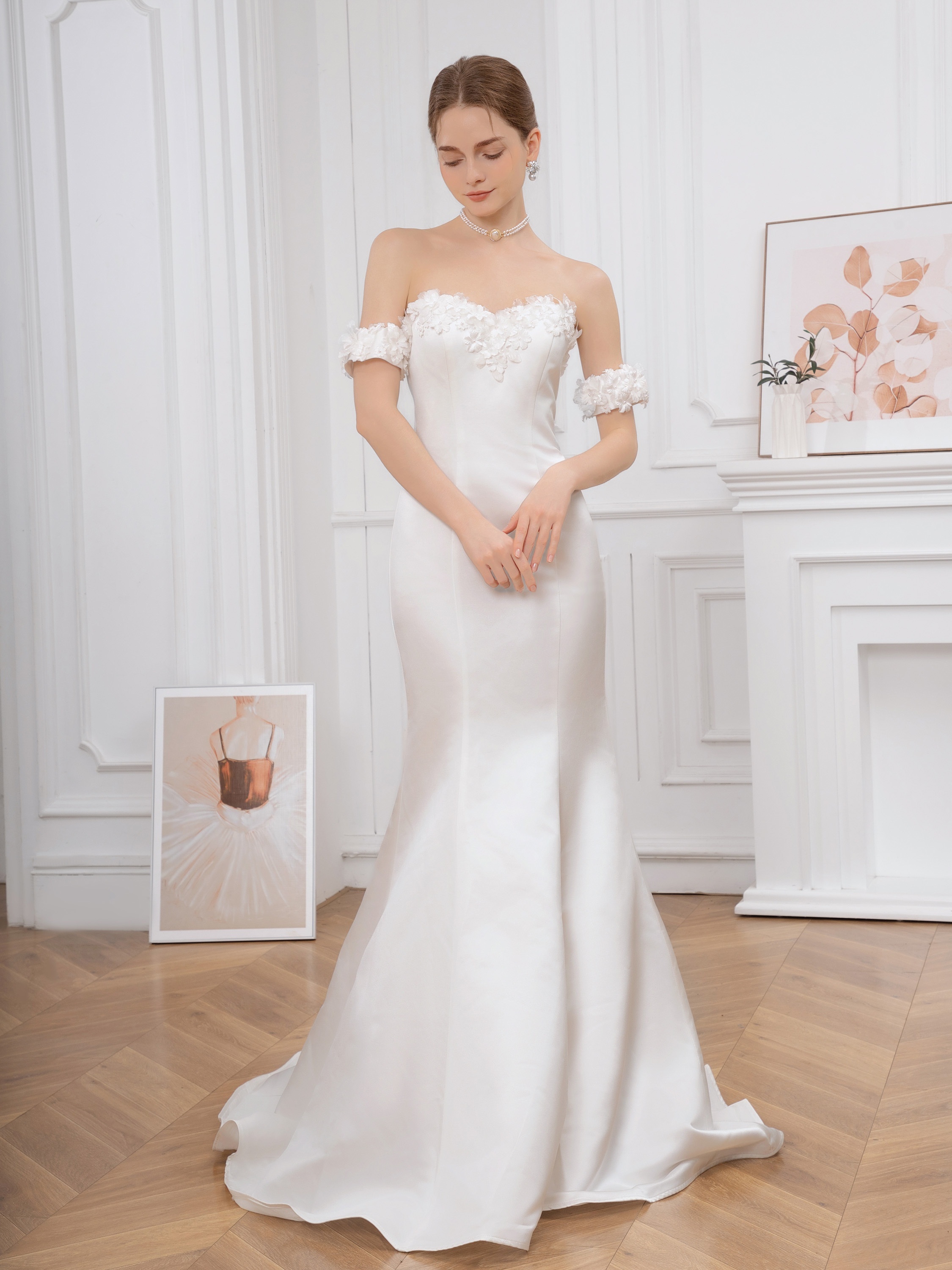 Elegant Off-Shoulder Ruffle Hem Wedding Dress - Exquisite Tie Back Wedding Party Gown for Women - Formal Evening, Occasion, Engagement, Ceremony, and Reception Wear