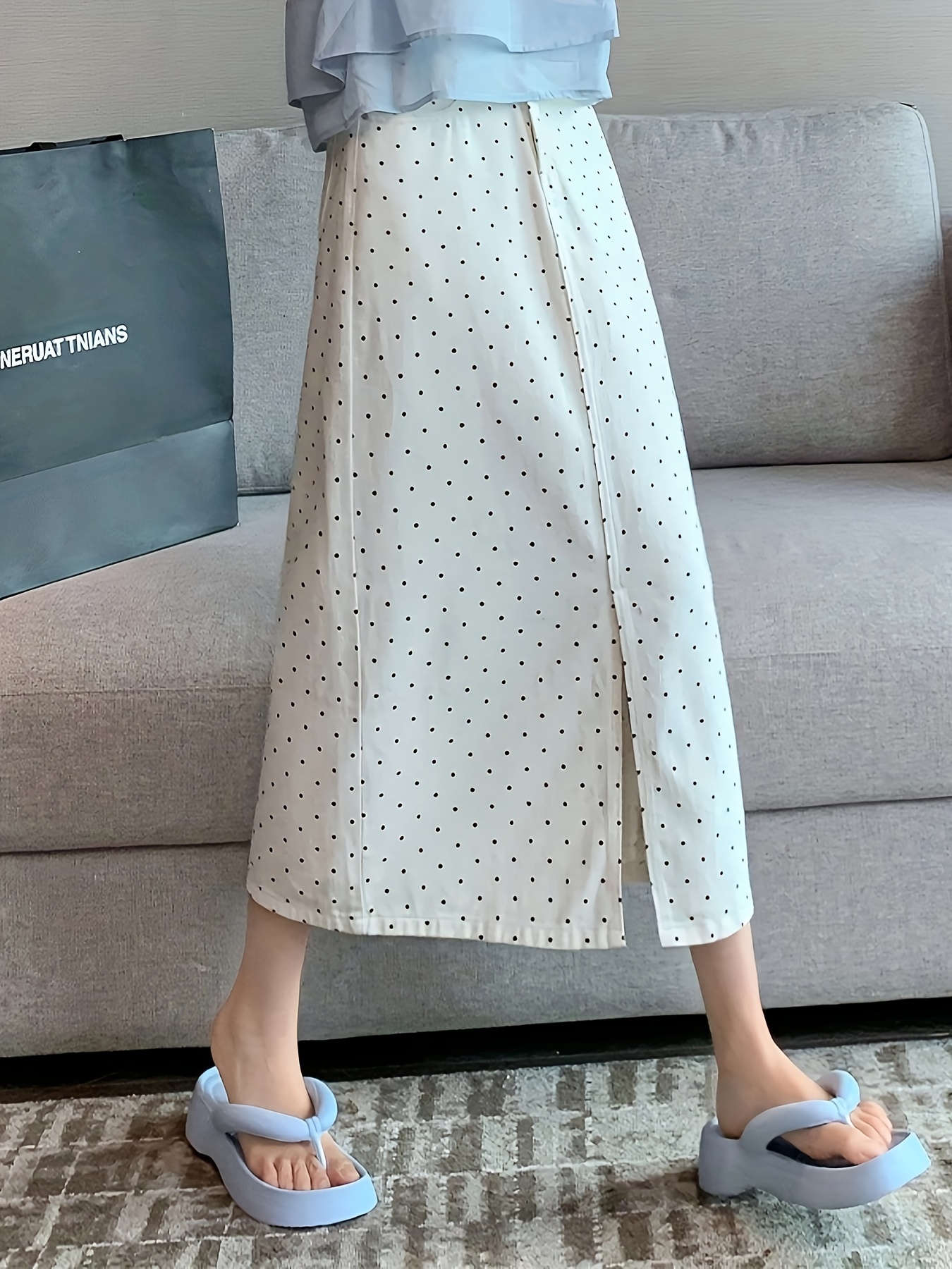 Elegant Whisker High Waist Maxi Denim Skirt - Women's Denim Skirts with Polka Dots Print, Stylish and Comfortable Design, Perfect for Casual Daily Wear and Outdoor Activities - Women's Denim Jeans & Clothing
